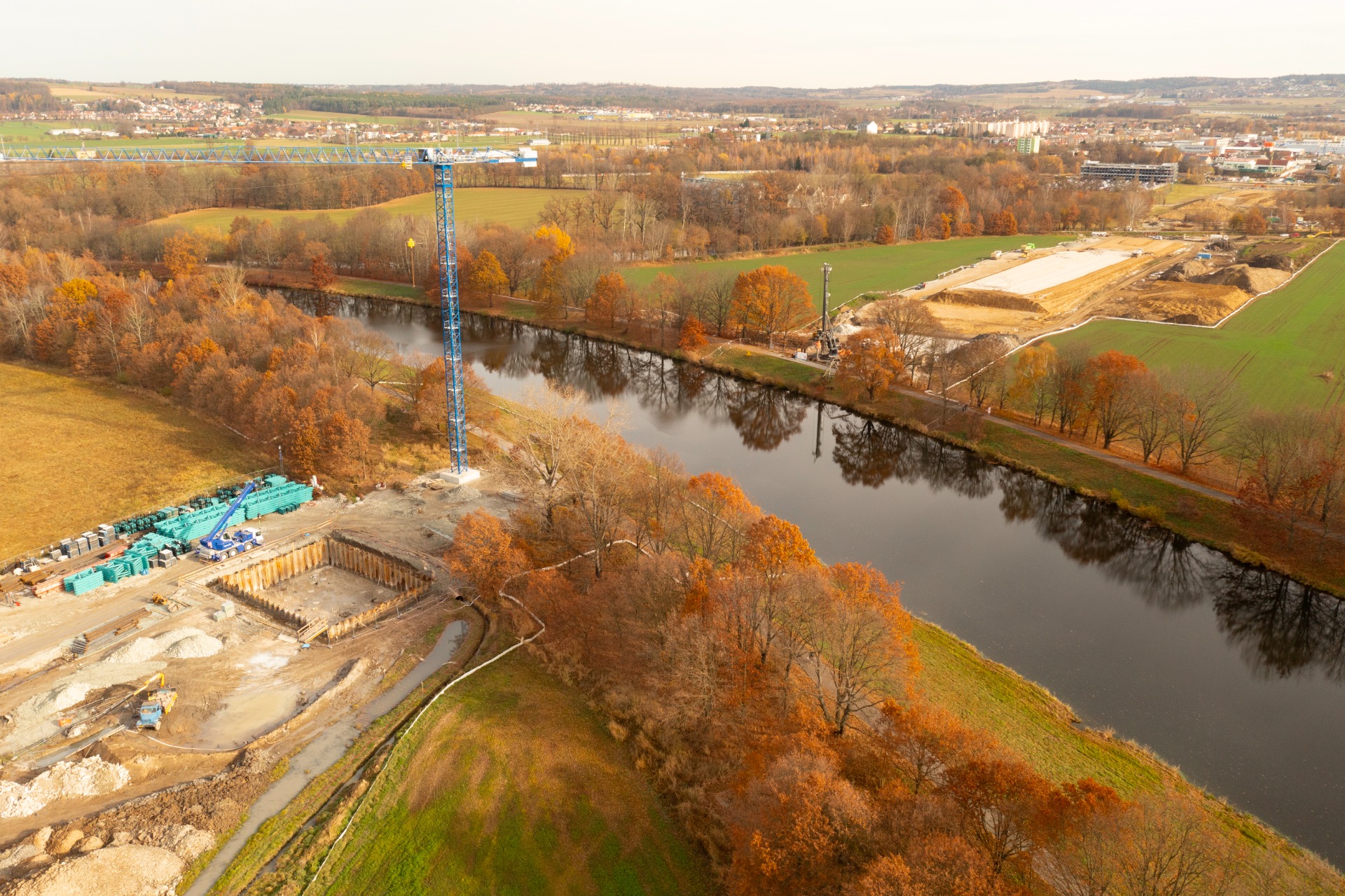 Založení mostních provizórií, výkop stavební jámy s pažením